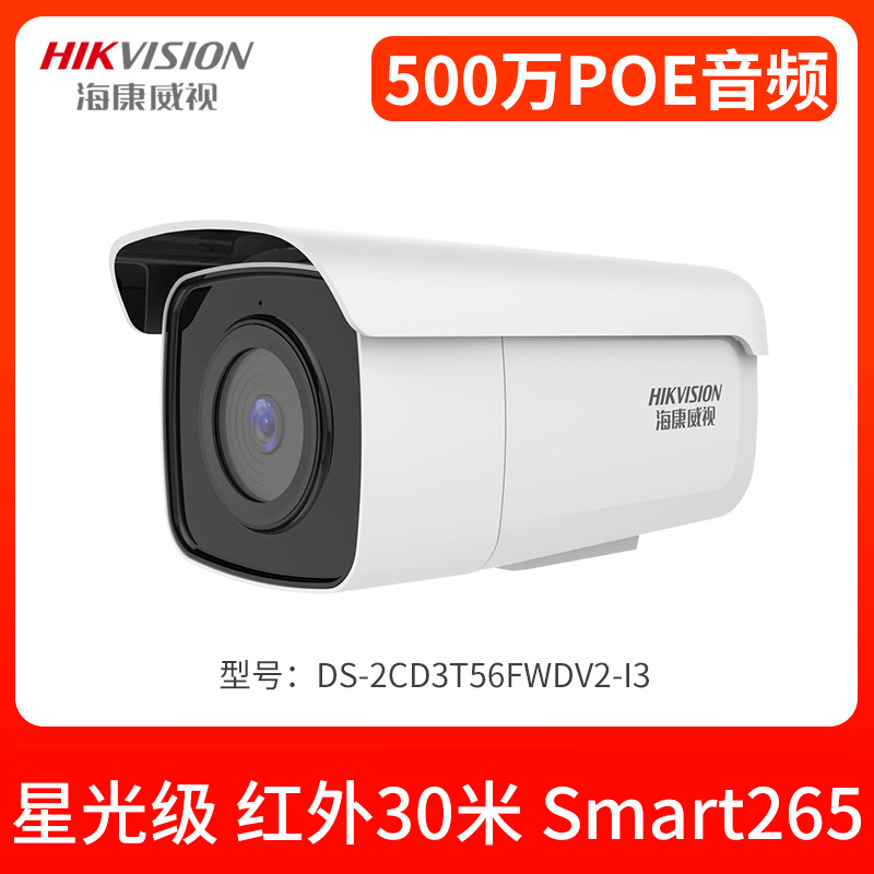 • 海康威視(HIKVISION)500萬星光級可錄音 監(jiān)控器室外紅外槍機(jī)DS-2CD3T56FWDV2-I3
